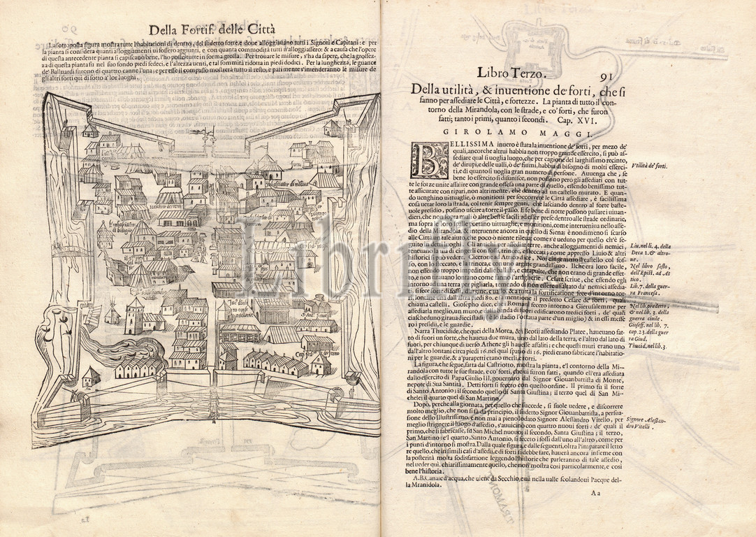 Fortification, town, citadel, architecture, engraving, 16th century, 17th century, historic, old, ancient, houses, street, girolamo maggi