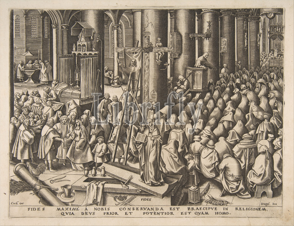 Fortitude (Fortitudo) from The Virtues, ca. 1559–60, Engraving; first state of two, Sheet: 10 1/4 x 13 1/4 in. (26 x 33.7 cm), Prints, After Pieter Bruegel the Elder (Netherlandish, Breda (?) ca. 1525–1569 Brussels), Philips Galle (Netherlandish, Haarlem 1537–1612 Antwerp)