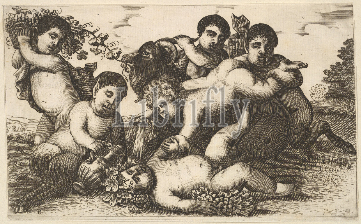 Four boys, two satyrs, goat, 17th century, Etching, nd engraving, Plate, 4 15/16, 7, 12.5, 20.1 cm, Prints, Wenceslaus Hollar, Bohemian, Prague, 1607–1677, London