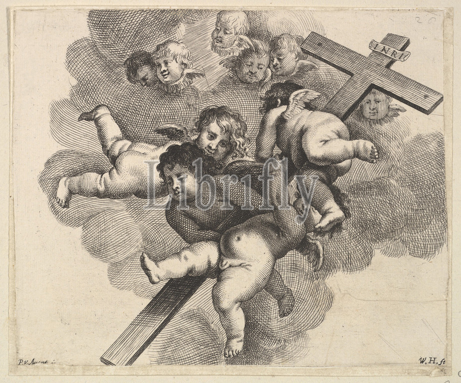Four cherubs carrying, cross, 1625–77, Engraving, rejected, Howard, Pennington, New Hollstein, Turner, Sheet, 5 7/16, 6 9/16, 13.8, 16.7 cm, Prints, Wenceslaus Hollar, Bohemian, Prague, 1607–1677, London, cherubs, carrying