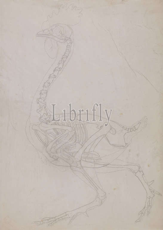 Fowl Skeleton, Lateral View, Outline drawing, George Stubbs, 1724–1806, British, 1795, 1806, Graphite, thin, slightly textured, cream wove paper, Sheet, anatomical study, anatomy, bird, figure study, skeleton, study, visual work