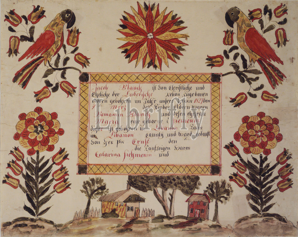 Fractur Drawing, Pen, 1827, 12 3/4 x 16, 32.4 x 40.6 cm, craft, domestic arts, folk, folk art, needlework, Pennsylvania Dutch