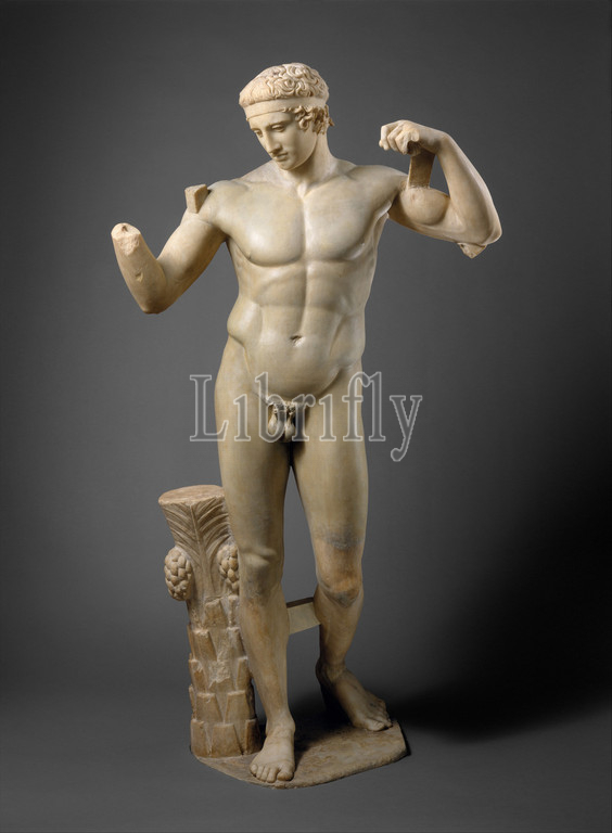 Fragments, marble statue, Diadoumenos, youth tying, fillet, head, Early Imperial, Flavian, ca, .D, 69–96, Roman, Marble, H, 73, 185.4 cm, Stone Sculpture