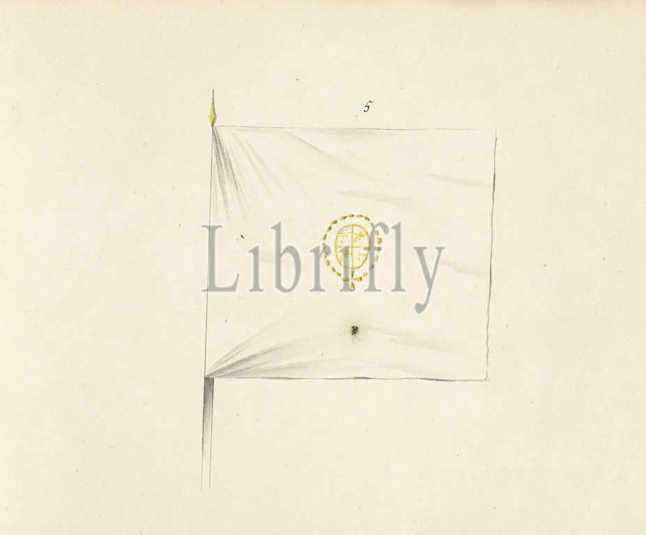 French banner captured at Ath, 1706, French banner captured at Ath in 1706. In the book of drawings of French banners, standards and timpani captured during the War of Spanish Succession (1701-1713)., draughtsman: anonymous, Northern Netherlands, 1713 - 1720, paper, writing (processes), drawing, height 172 mm × width 230 mm