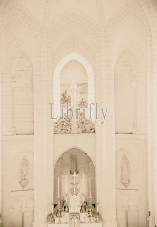 French church, orphanage, Jesus Adolescent, Nazareth, Telephoto, gallery, statue, Jesus Adolescent, high altar, done, French Sculptor, Bogino, 1899, Palestine, 1910, 1940, Israel, Nazareth