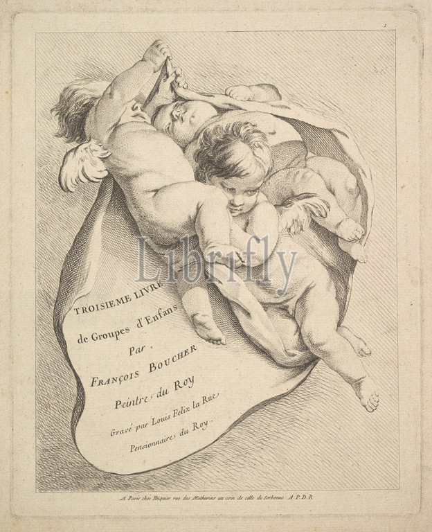 Frontispiece, Etching and engraving, sheet: 12 1/8 x 10 3/4 in. (30.8 x 27.3 cm), Prints, Louis Félix de La Rue (French, Paris 1731–1765 Paris), After François Boucher (French, Paris 1703–1770 Paris)