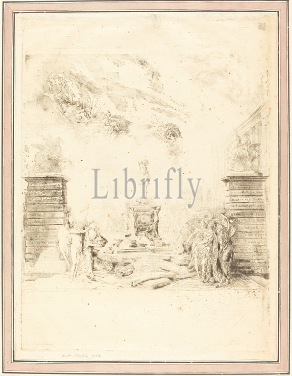 Gabriel de Saint-Aubin, (artist), French, 1724 - 1780, Allegorie sur l'Erection de la Statue de Louis XV (Allegory on the Establishment of a, c. 1763, etching