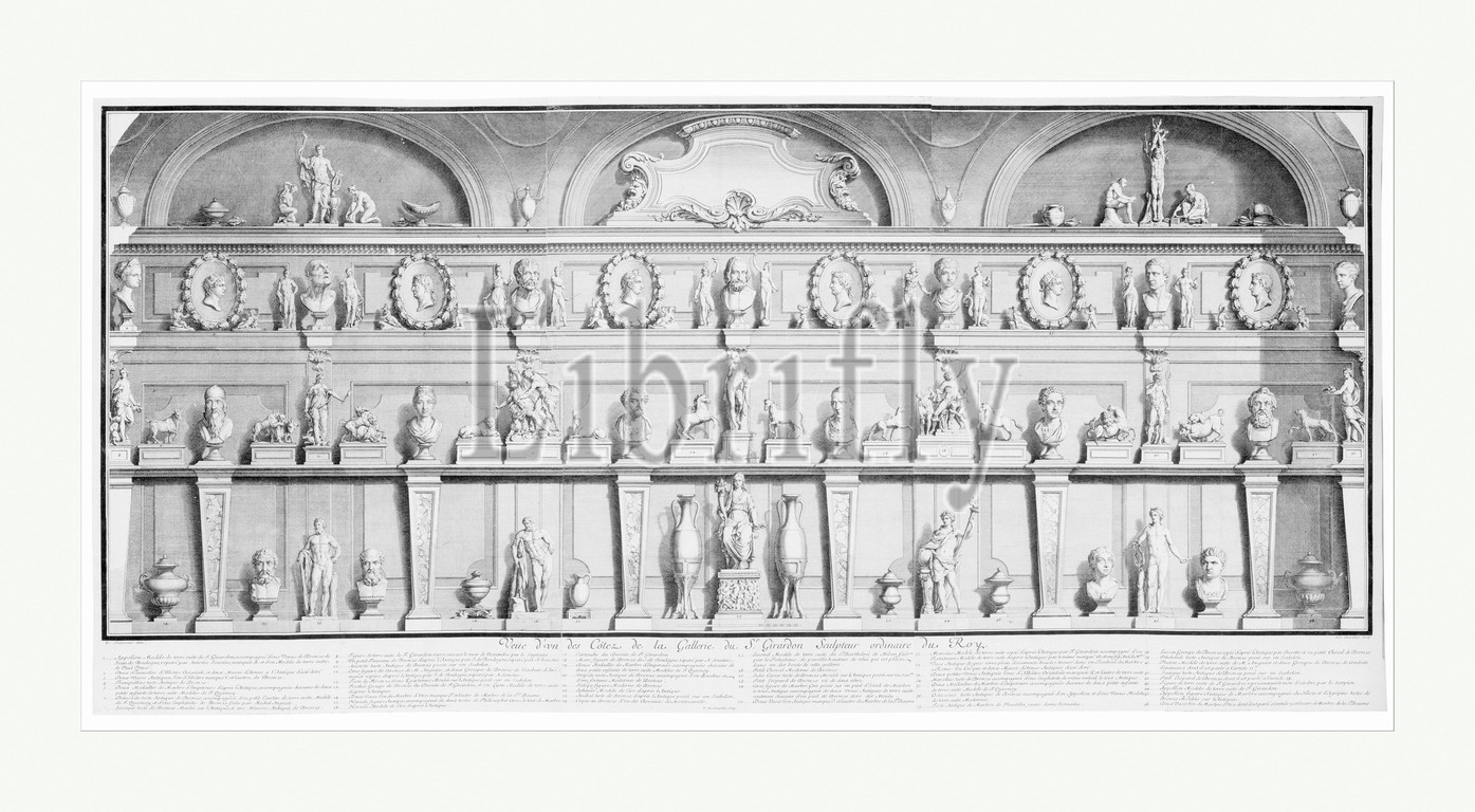 La Galerie de Girardon, 18th century, Etching and engraving, image: 18 7/8 x 45 1/4 in. (47.9 x 114.9 cm), Prints, Nicolas Chevalier (French, active Paris, 18th century), After René Charpentier (French, Cuille 1680–1723 Paris)