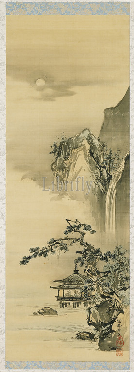 Ganku, Japanese, 1756-1838, Lake Pavilion, Waterfall, 1745, 1838, Ink, watercolor, paper, Overall, 67