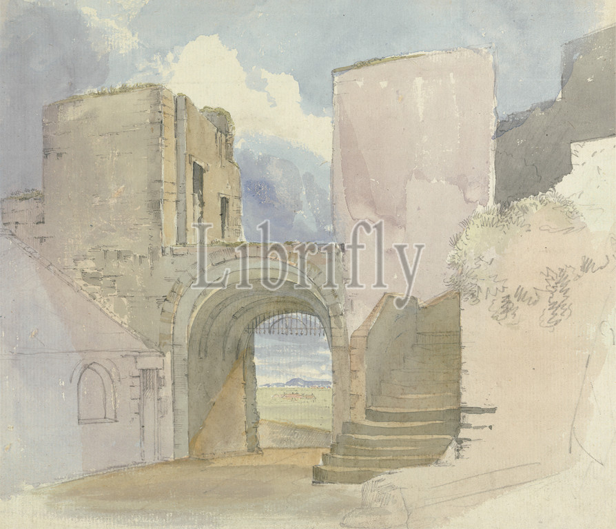 Gateway, Bamburgh Castle, Edward Hastings, active 1804–1861, British, 1810, Watercolor, graphite, medium, slightly textured, cream laid paper, Sheet, arch, architectural subject, castle, gateway, Bamburgh, Bamburgh Castle, England, Northumberland, United Kingdom