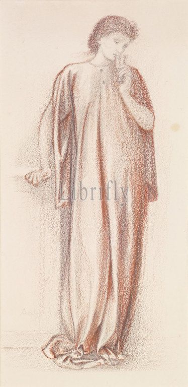 St George Series, Study, Princess, Princess draws, fatal Lot, 1865-1866 Artist, Sir Edward Burne-Jones, Art Movement, Pre-Raphaelite, Drawing, Royal, Princess, Works, Paper