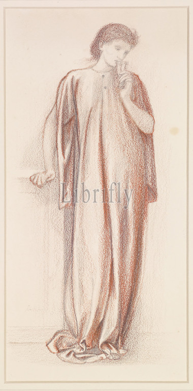 St George Series, Study of the Princess for 'The Princess draws the fatal Lot' SIR Edward Burne-Jones, Drawing, Chalk, Textiles, Sketch, Pre-Raphaelite, Female, Full-length