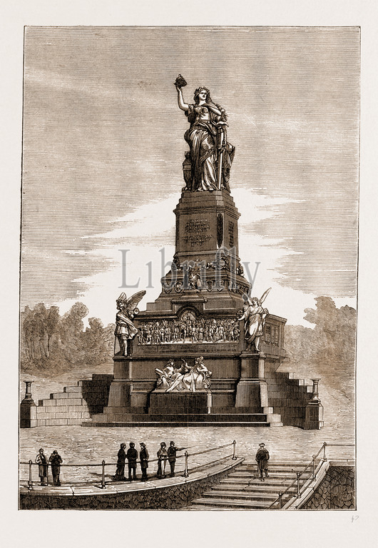 GERMAN, NATIONAL, MONUMENT, NIEDERWALD, 1883, GERMANIA, STATUE, 19th century engraving, engraved image, history, illustrative technique, engravement, engraving, victorian, Arts, Culture, 19th Century Style, Retro Styled, Vintage, retro, arkheia, nineteenth century engraving, historic art