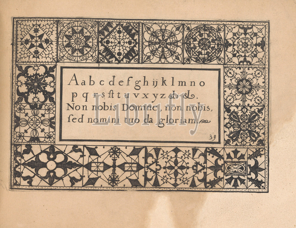 Ghirlanda: Di sei vaghi fiori scielti da piu famosi Giardini d'Italia, page 47 (recto), October 1, 1604, Etching and drawing, Overall: 5 7/8 x 7 7/8 in. (15 x 20 cm), Designed by Pietro Paulo Tozzi, published by Libraria del Giesu, Padua. Calligraphy by Antonello Bertozzi and Sebastian Zanella, scribes of Padua. Design is composed of a central rectangle upon which a variation of the alphabet and 2 lines of text are printed