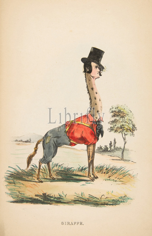 Giraffe, John E, Owens, Jakey, Comic Natural History, Human Race, 1851, Color lithography, watercolor, gum, sheet, 11 1/16 x 7 3/16, 28.1 18.2 cm, Prints, Henry Louis Stephens, American, Philadelphia, Pennsylvania, 1824–1882, Bayonne, New Jersey