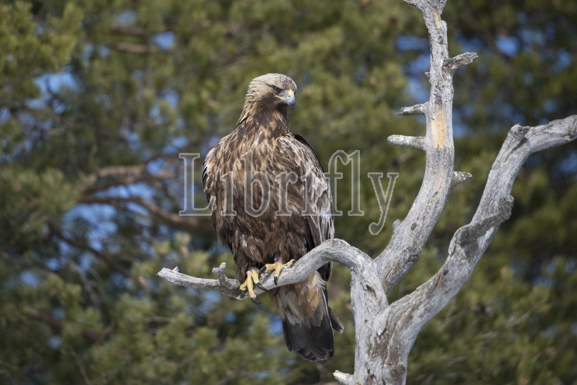 Golden Eagle, perched, tree trunk, Aquila chrysaetos, Sweden, nature, bird, animal, wildlife, wild, fauna, natural, feather, sky, beak, wing, outdoor, freedom, colourful, Liszt, Natural History, ornithology, vertebrate animals, photography, color image