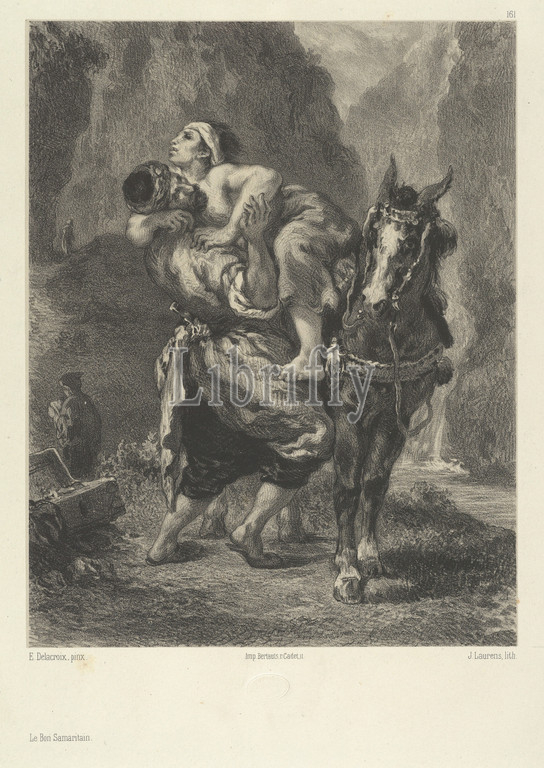 Good Samaritan, n.d, Engraving, Image, 10 1/16 x 6 15/16, 25.6 17.6 cm, Prints, Jules Laurens, French, Carpentras, 1825–1901, Saint Didier, After Eugène Delacroix, Charenton-Saint-Maurice, 1798–1863, Paris