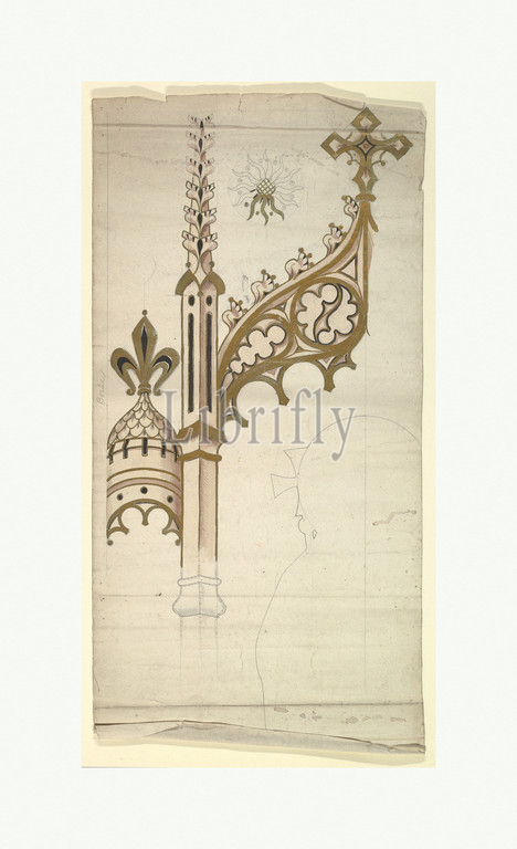 Gothic Canopy, late 19th–early 20th century, Graphite, pen, ink, watercolor, sheet, 27 x 13 1/2, 68.6 34.3 cm, Ernest Geldart, British, London, 1848–1929