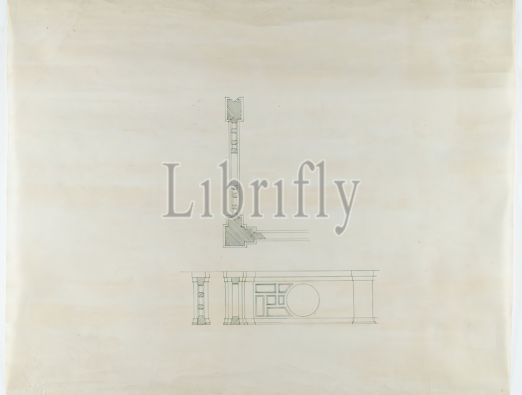 Gottfried Semper, Pauszeichnung zum Pfeilertisch, cabinet, Frontal view, cross section, top view, corner solution, balustrade, old stock, 1903, ink, pen-and-ink drawing, sheet size, in lead, Semper, table