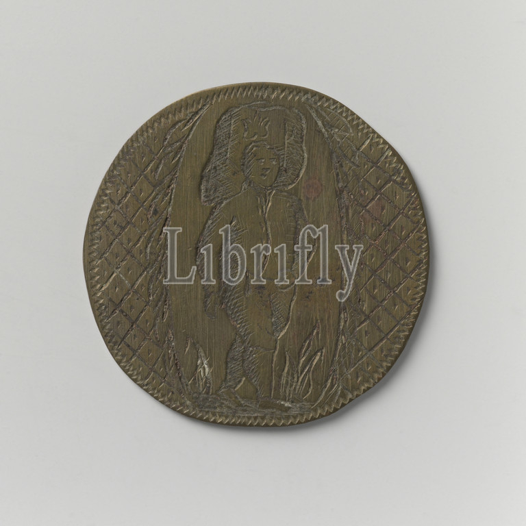 Grain Carriers and Pourers Guild of Amsterdam, Guild Medal of Jan Jacob de Leeuw, Brass Medal. Obverse: Man slightly inclined to the right with burden on head within scroll ring, background: shaded. Reverse: inscription, Amsterdam, Jan Jacob de Leeuw, anonymous, 1792, brass (alloy), engraving, d 3.4 cm × w 5.14 gr
