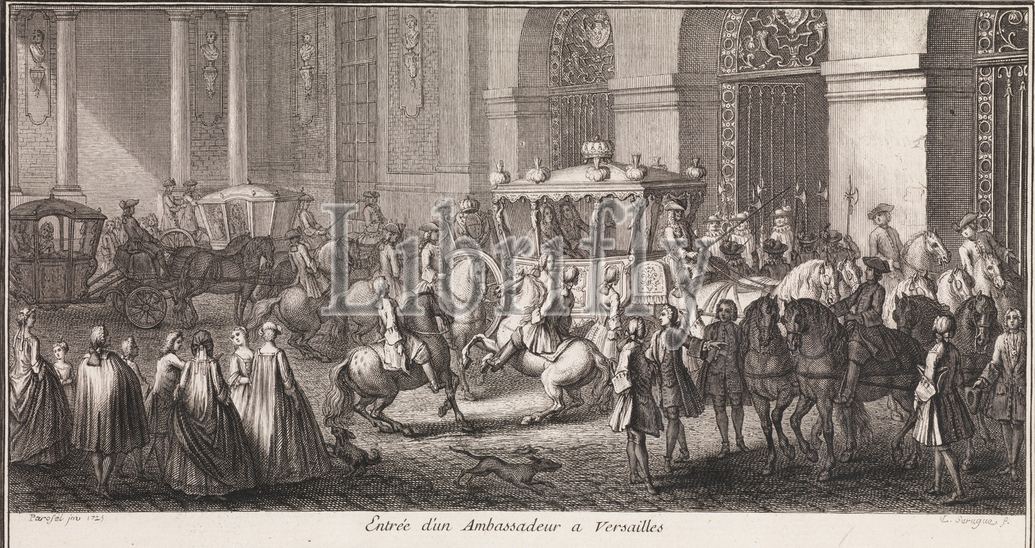 Grand Escalier du Chateau de Versailles dit des Ambassadeurs, 1725, Engraving, etching, Overall, 21 1/16 x 16 7/8, 53.5 40.7 2.3 cm, Books