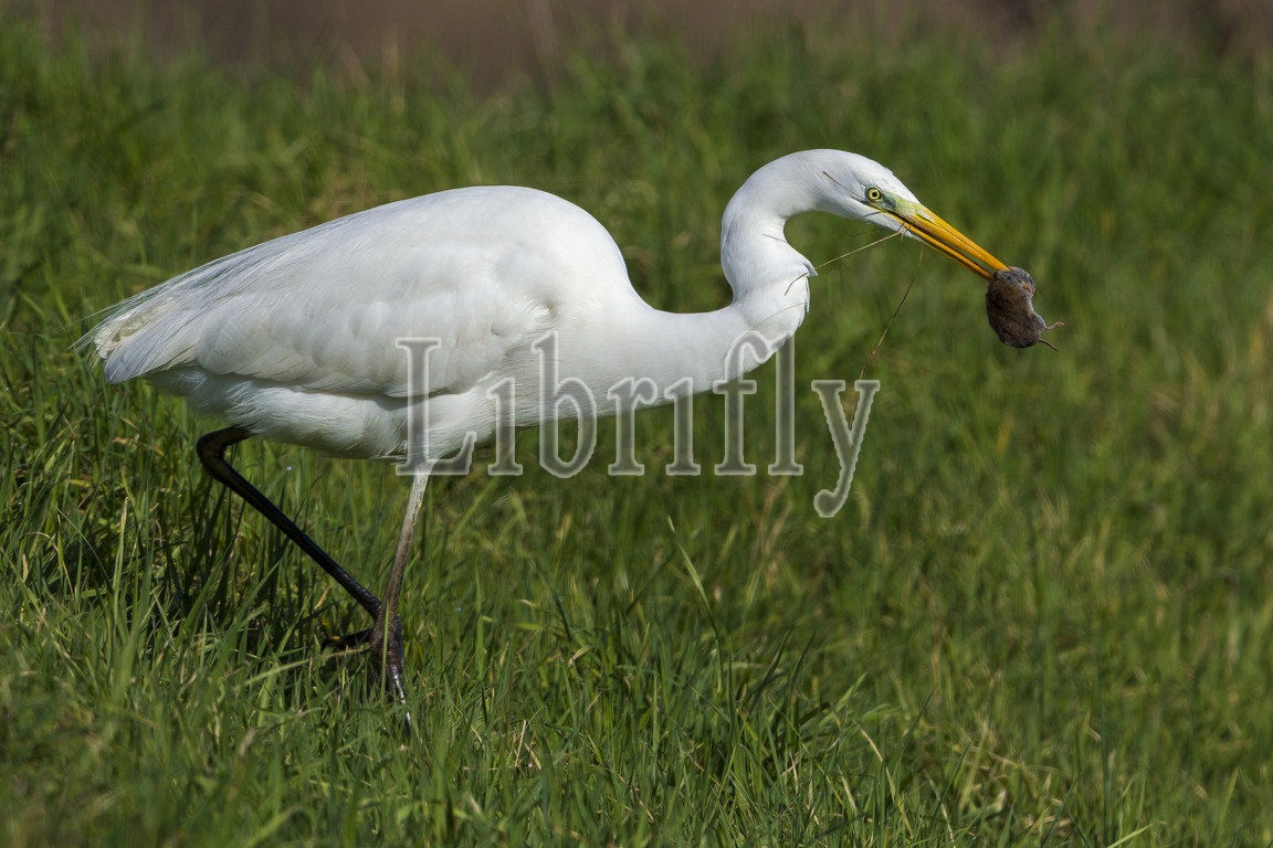 Great Egret with prey, Egretta alba, Ardea alba, Italy