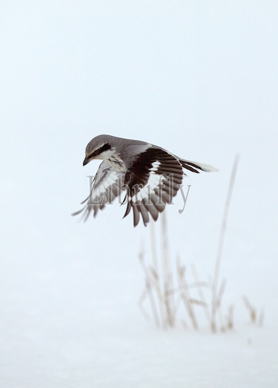 Great Grey Shrike looking for prey, Lanius excubitor