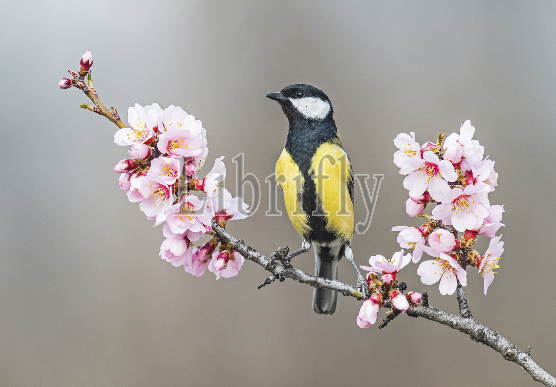 Great Tit, Parus major, flowering tree, spring, Italy, nature, bird, animal, wildlife, wild, fauna, natural, feather, sky, beak, wing, outdoor, freedom, colourful, Liszt, Natural History, ornithology, vertebrate animals, photography, color image