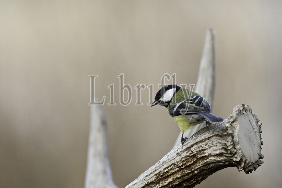 Great Tit perched on an antler, Parus major