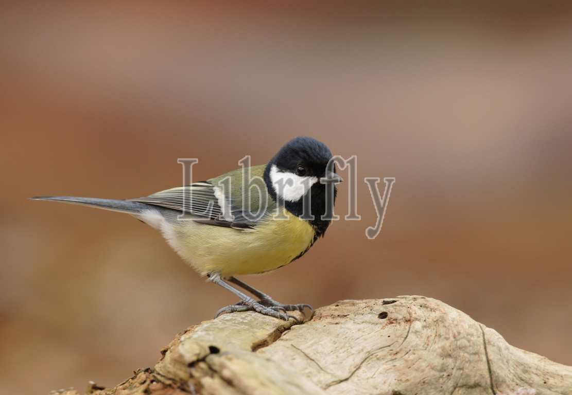 Great Tit perched on branch, Parus major
