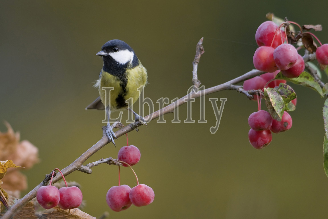 Great Tit perched on branch, Parus major