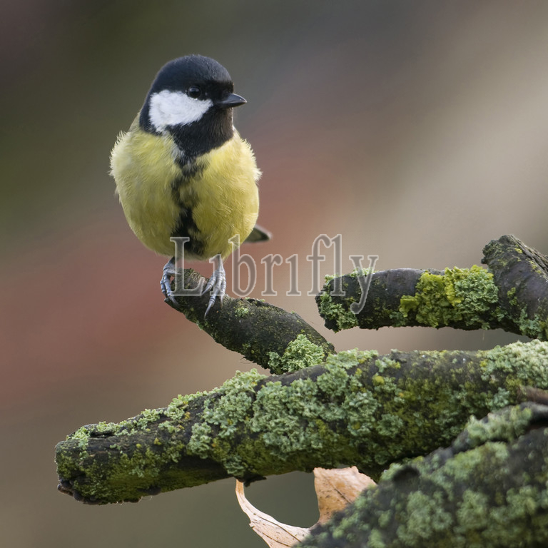 Great Tit perched on branch, Parus major
