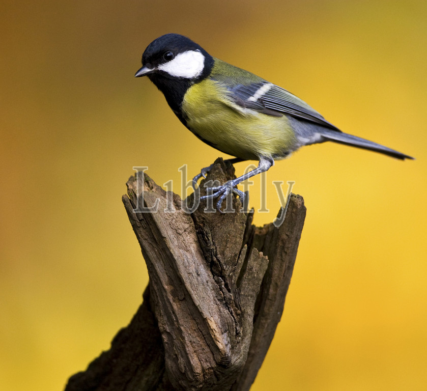 Great Tit perched on branch, Parus major