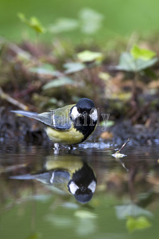 Great Tit perched in water, Parus major