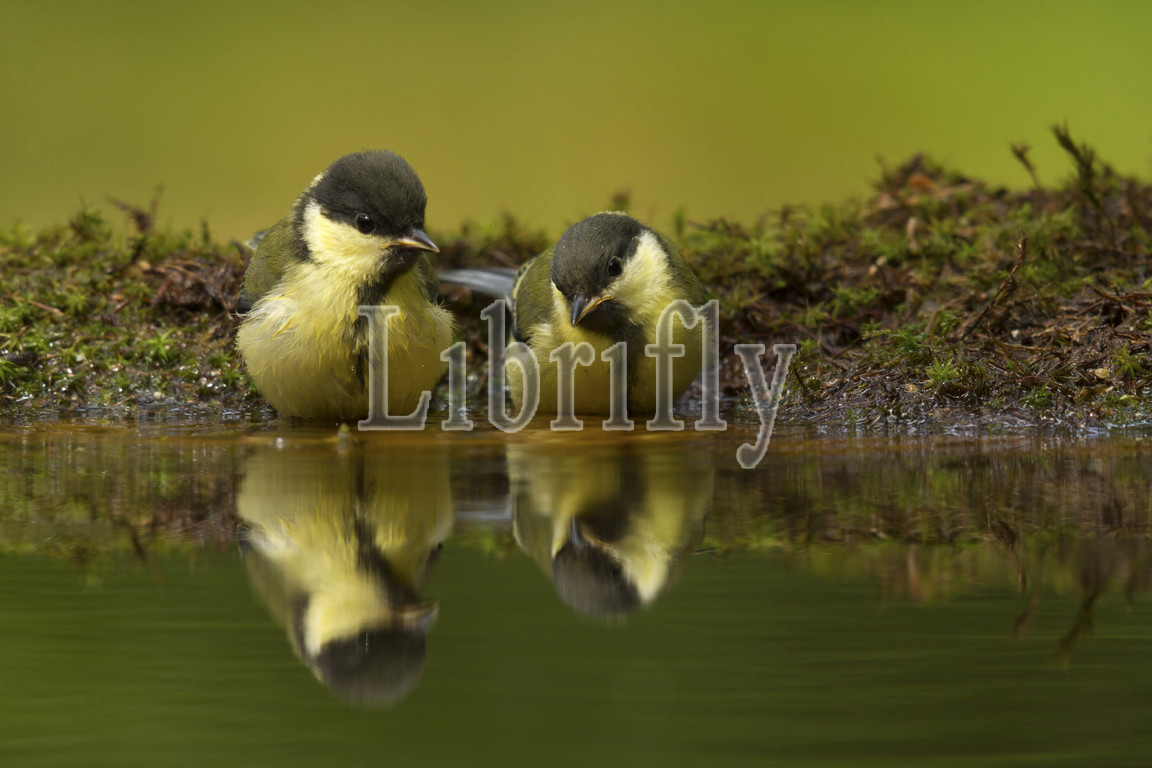 great tits together in pond, Netherlands