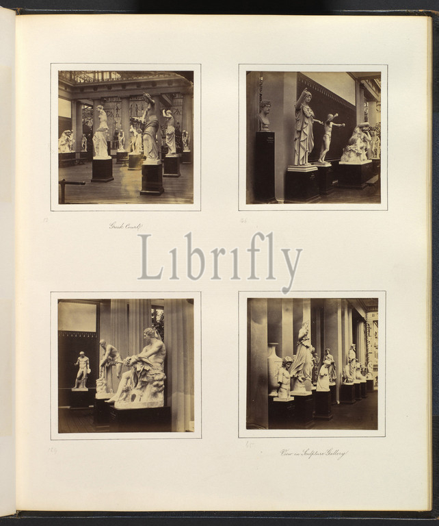 [Greek Court; Statue of Minerva; Ludovisi Mars; Iris, Hecate, or Lucifera], ca. 1859, Albumen silver print from glass negative, 7.9 x 8.1 cm (3 1/8 x 3 3/16 in.), each, Photographs, Attributed to Philip Henry Delamotte (British, 1821–1889)