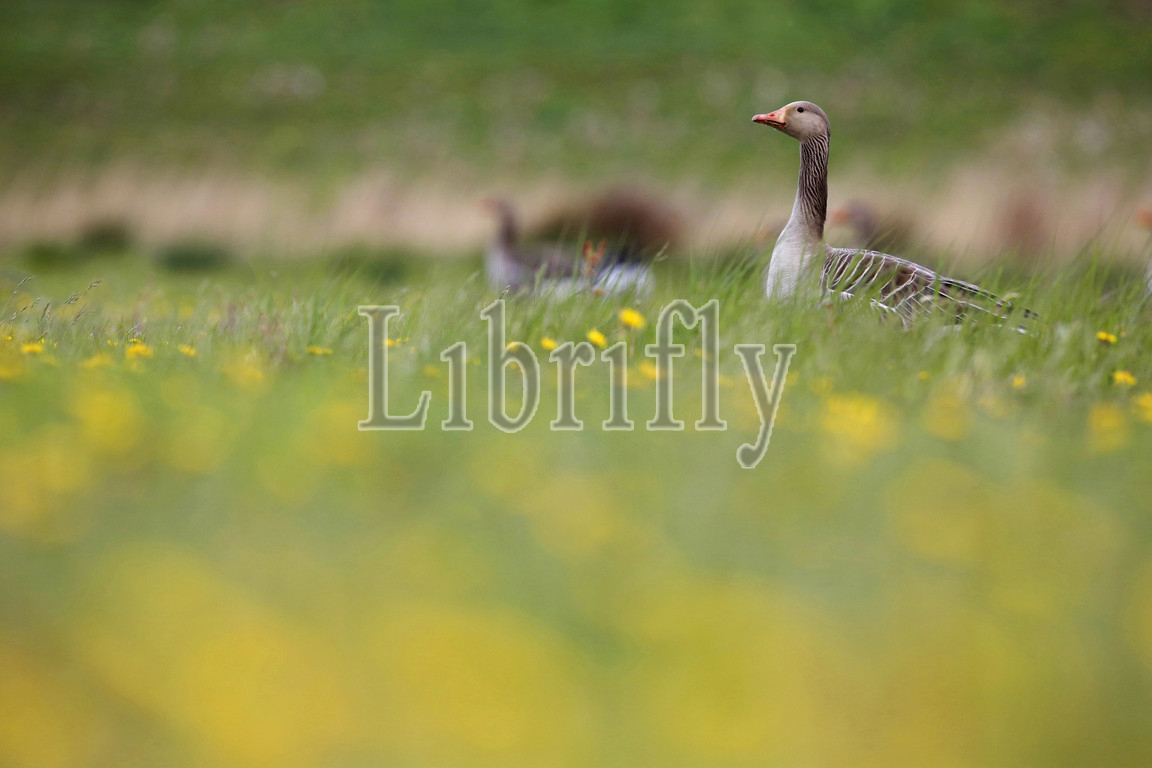 Grey Goose among dandelions, Netherlands