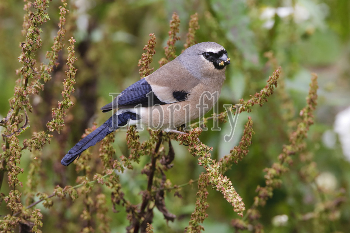 Grey-headed Bullfinch perched on a branch, Pyrrhula erythaca, Taiwan