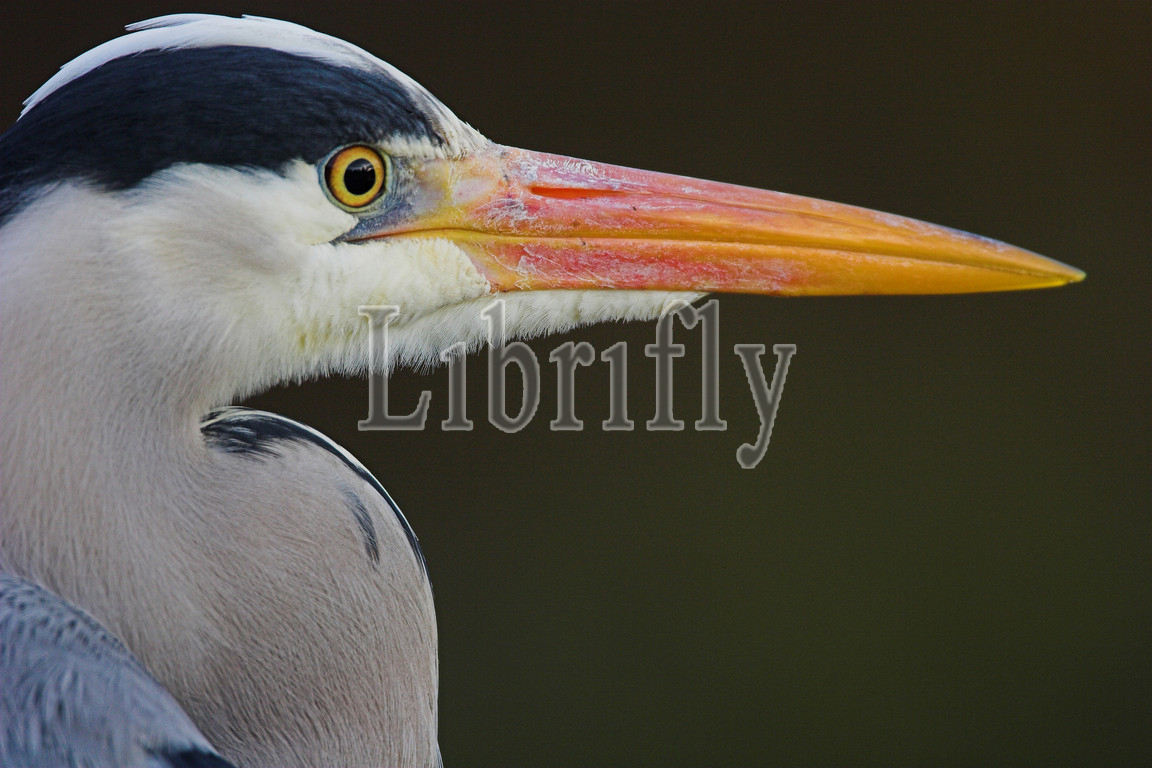 Grey Heron head close-up, Ardea cinerea