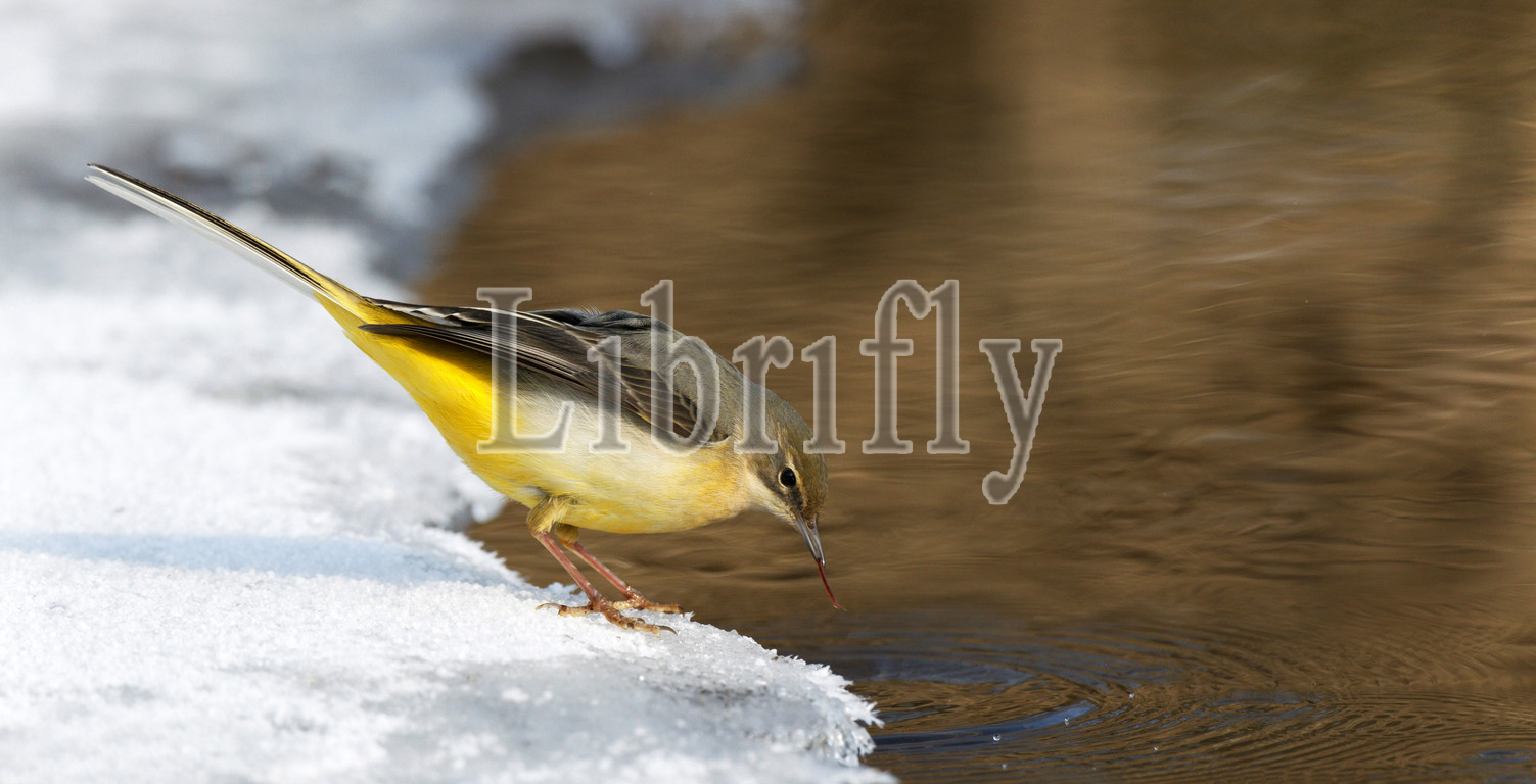 Grey Wagtail, ice, snow covered, partly frozen stream, Motacilla cinerea, Netherlands, nature, bird, animal, wildlife, wild, fauna, natural, feather, sky, beak, wing, outdoor, freedom, colourful, Liszt, Natural History, ornithology, vertebrate animals, photography, color image