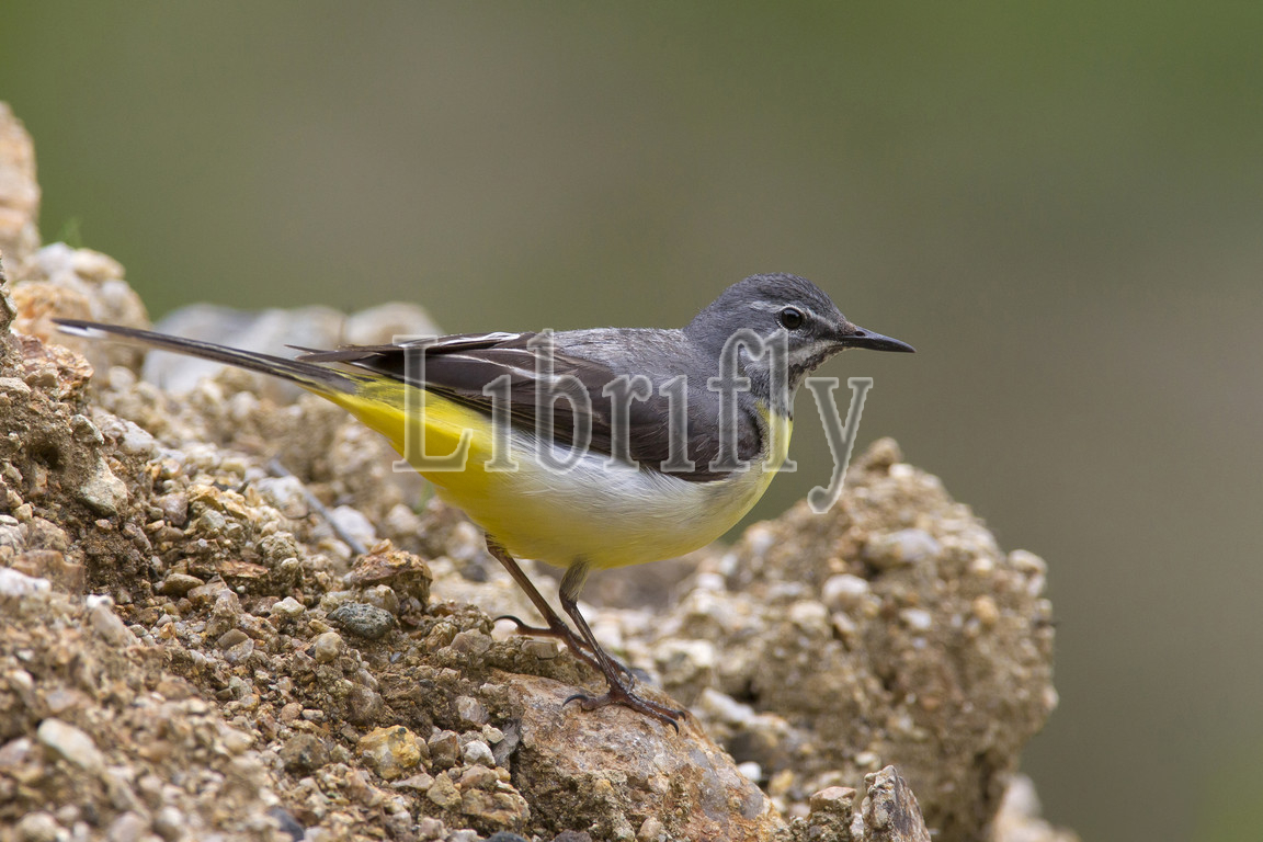 Grey Wagtail perched on rock, Motacilla cinerea, Turkey
