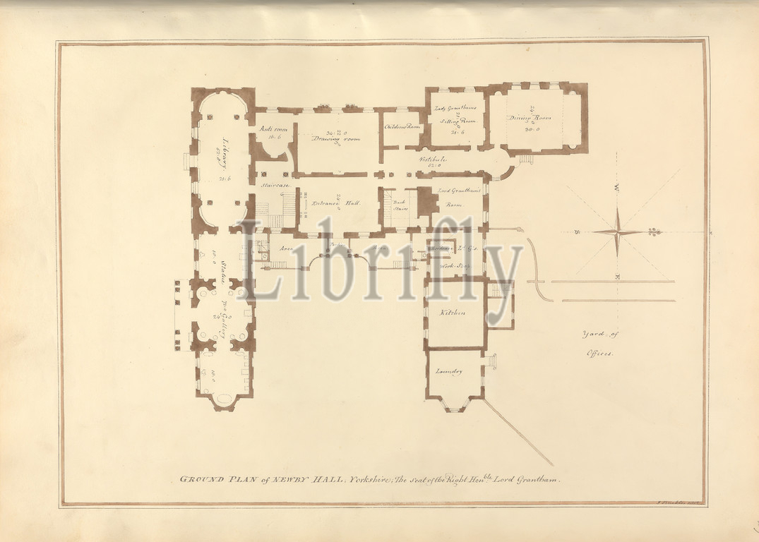 Ground Plan, Newby Hall, Yorkshire, Seat, Right Hon'ble Lord Grantham, John Buckler FSA, 1770–1851, British, John Chessell Buckler, 1793–1894, British, 1815, Watercolor, pen, black ink, moderately thick, cream wove paper, Sheet, Image, architectural subject, blueprint, country house, Georgian, Boroughbridge, England, Europe, North Yorkshire, United Kingdom