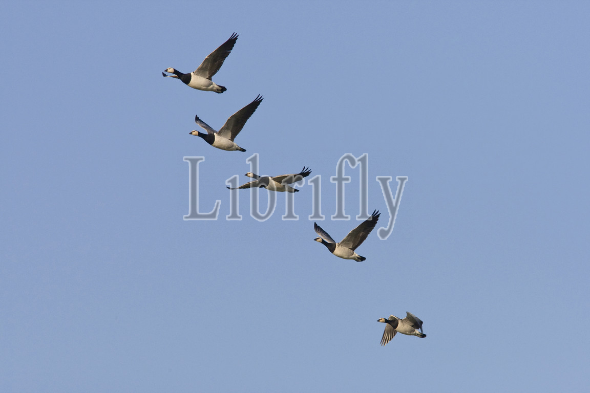 Group of Barnacle Geese in flight, Netherlands