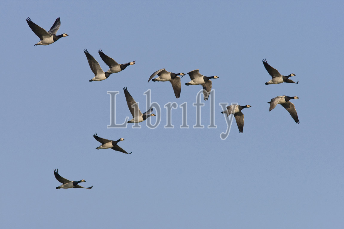 Group of Barnacle Geese in flight, Netherlands