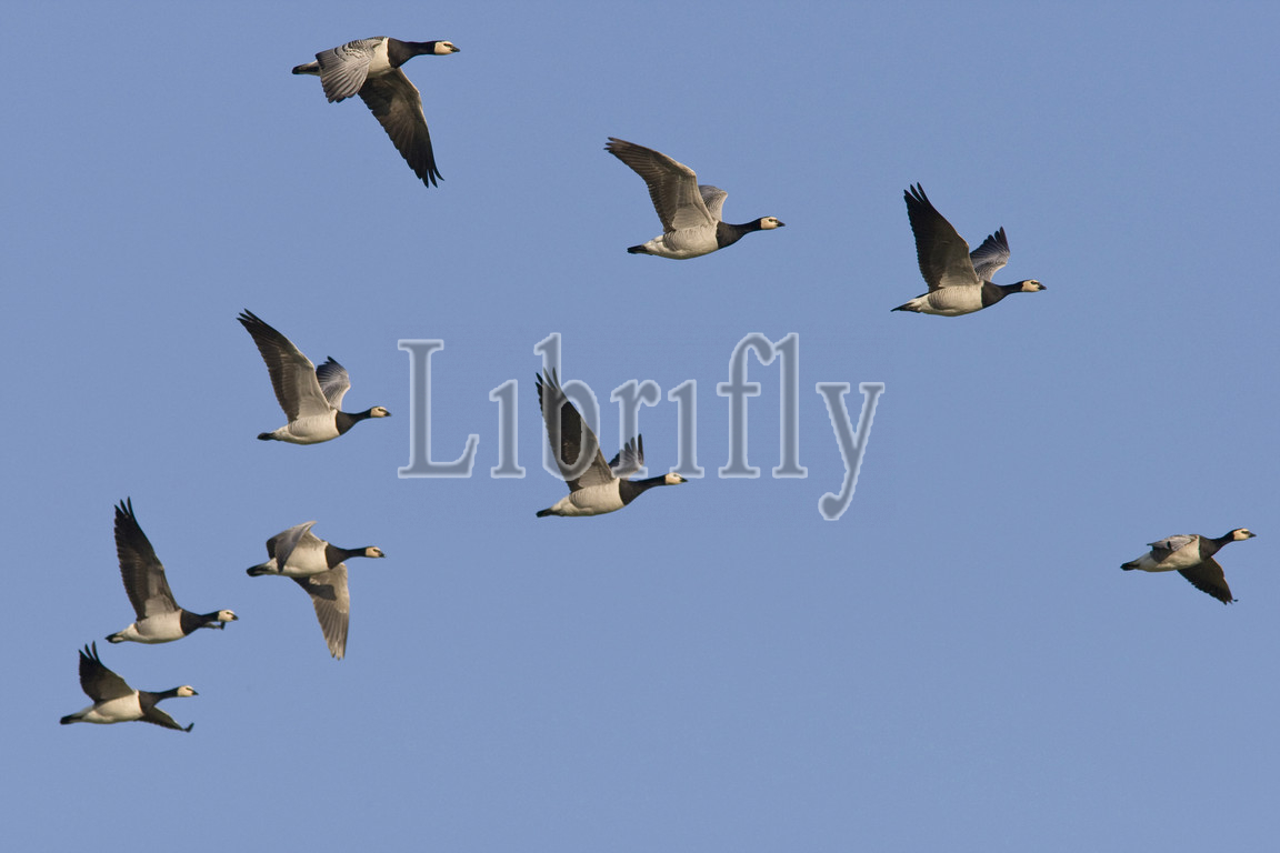 Group of Barnacle Geese in flight, Netherlands