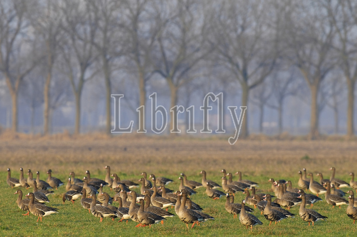 Group of Greater White-fronted Geese in meadow, The Netherlands