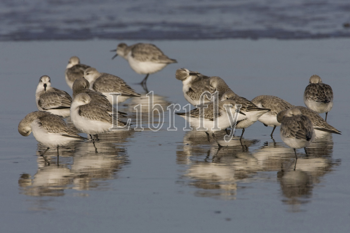 Group of Sanderling, Calidris alba, Netherlands