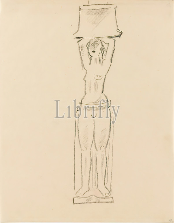 Gustav Heinrich Wolff, basket bearer, III, pencil, parchment, drawing, pencil, parchment, unmarked, sketches, drawing, graphics, design drawings, standing figure, container, Classic Modernism, single sheet, Bl, December 1924, partly created, Wolff's stay, Hamburg