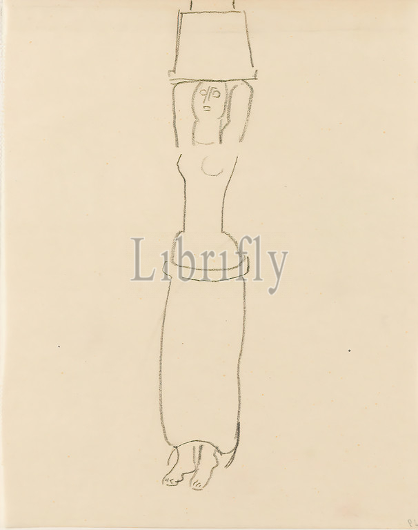 Gustav Heinrich Wolff, basket bearer, II, pencil, parchment, drawing, pencil, parchment, unmarked, sketches, drawing, graphics, standing figure, postures, positions, human figure, container, Classical Modernism, single sheet, Bl, December 1924, partly created, Wolff's stay, Hamburg