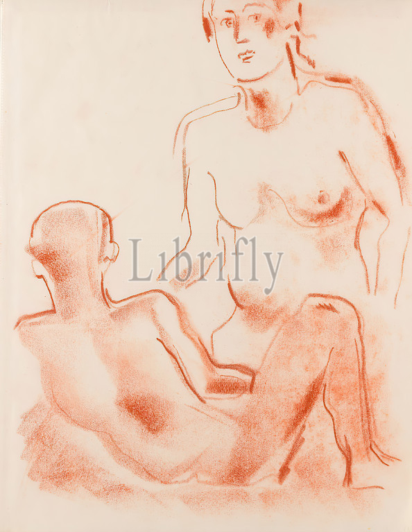 Gustav Heinrich Wolff, couple, drawing paper, red chalk, drawing, red chalk, drawing paper, unmarked, sketches, drawing, graphics, female nude, lovers, lovers couple, love, desire, sexual drive, male nude, back, classical modernism, single sheet, Bl, November 1929